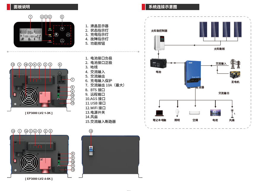 | 低壓報警 | 電池低壓關機點 +0.5V,12V 型號,(*2@24V / *4@48V) | ||||||||||||||||||||