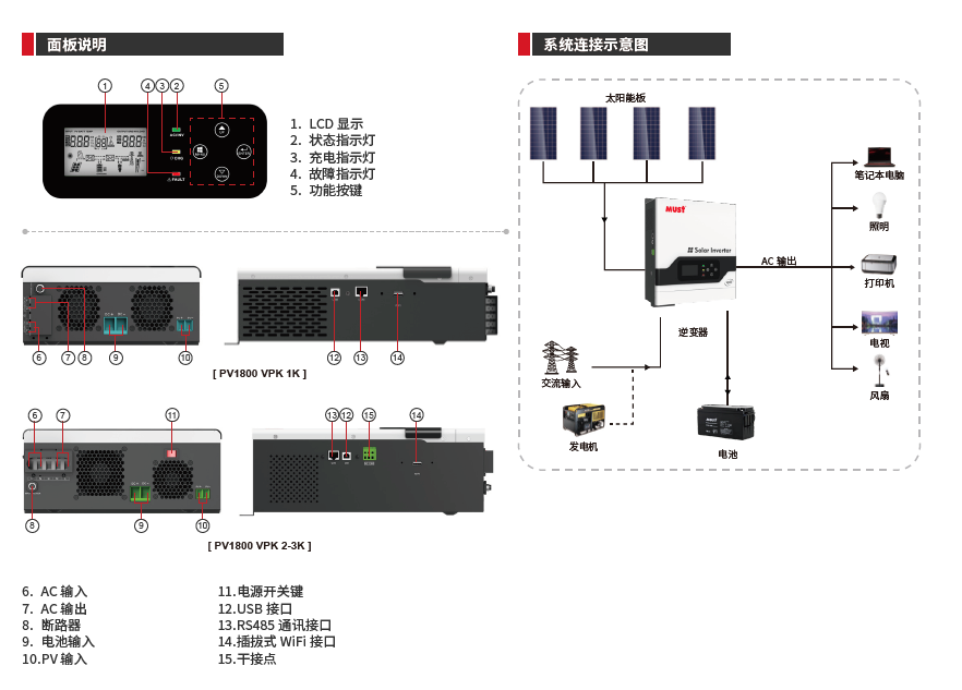 • 具有多模式設置功能,可通過LCD 屏選擇設置光伏、市電、電池的優先等級