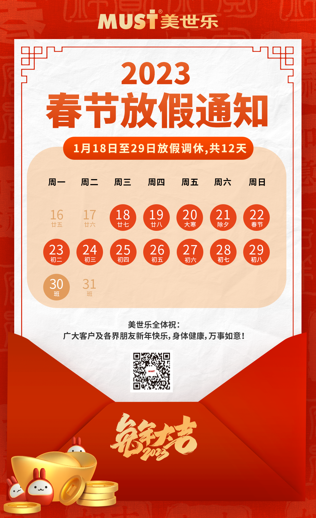 美世樂2023年春節(jié)放假通知