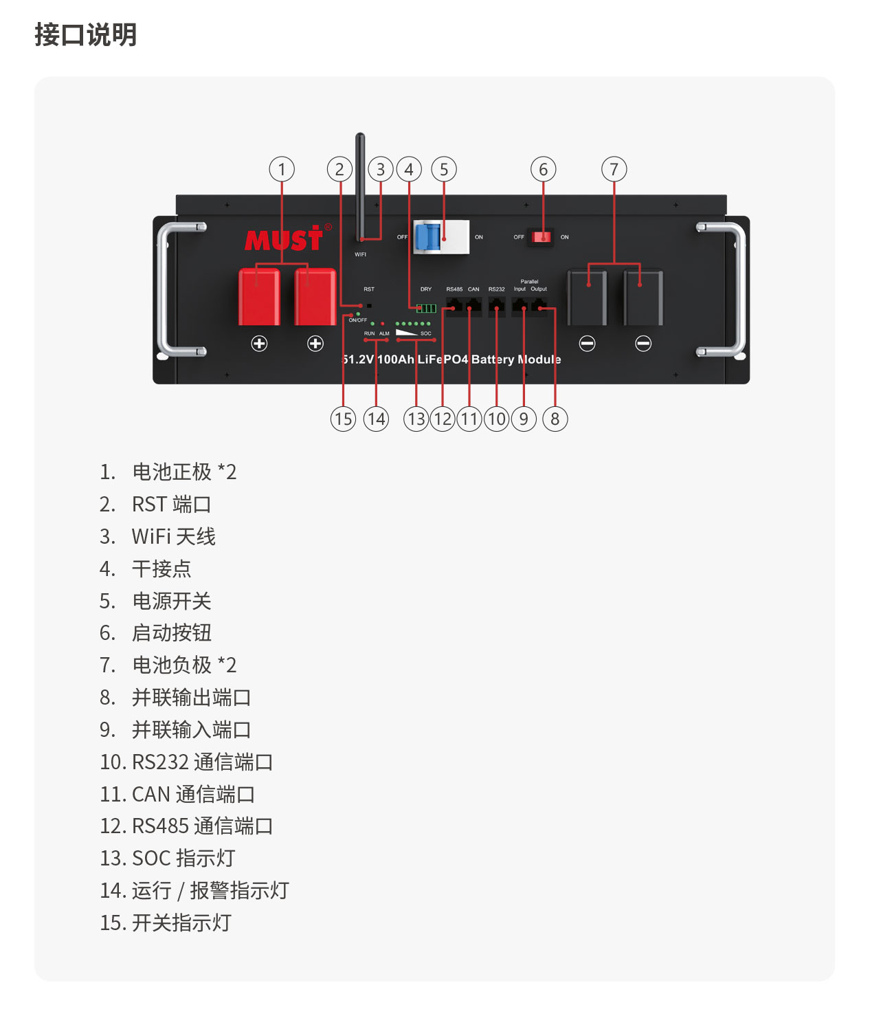 工作方式: 機架式磷酸鐵鋰(LIFEPO4)電池