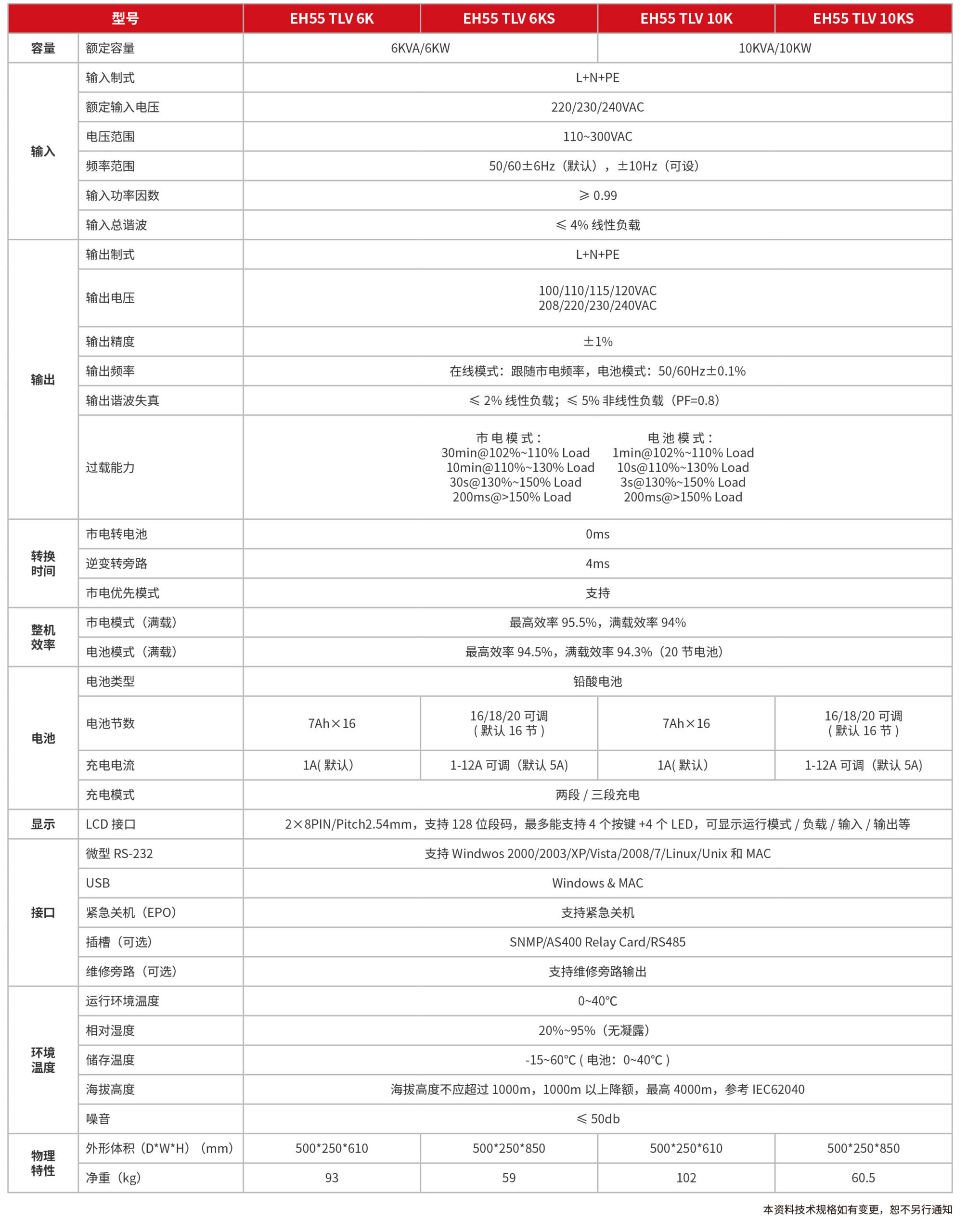EH5500 TLV系列高頻在線式單進單出UPS(6KVA-10KVA)