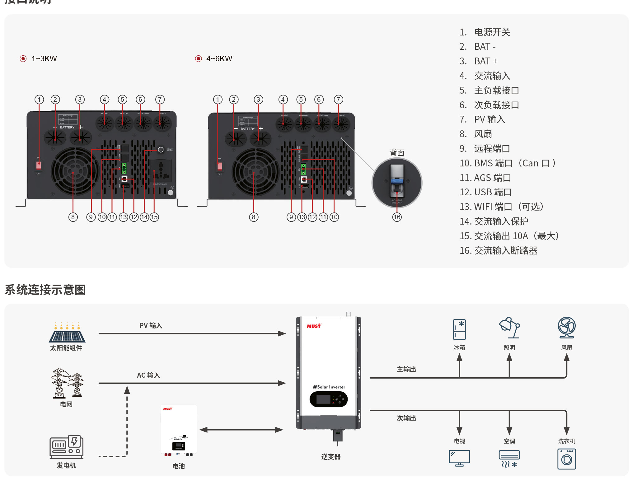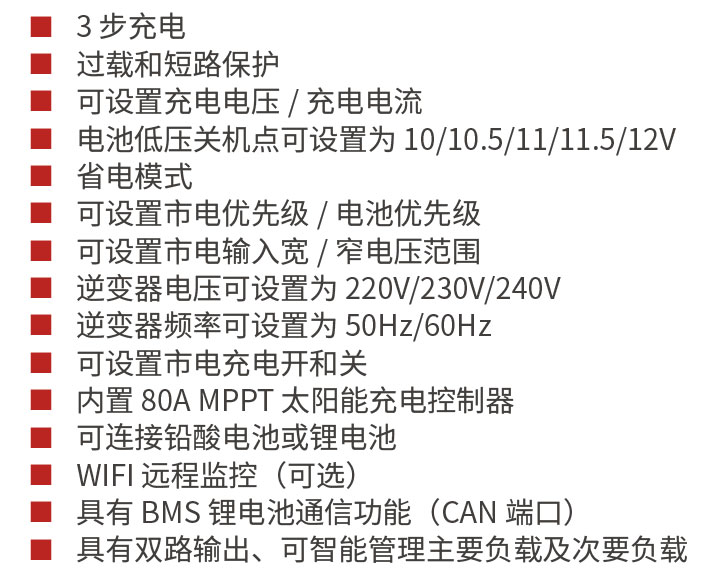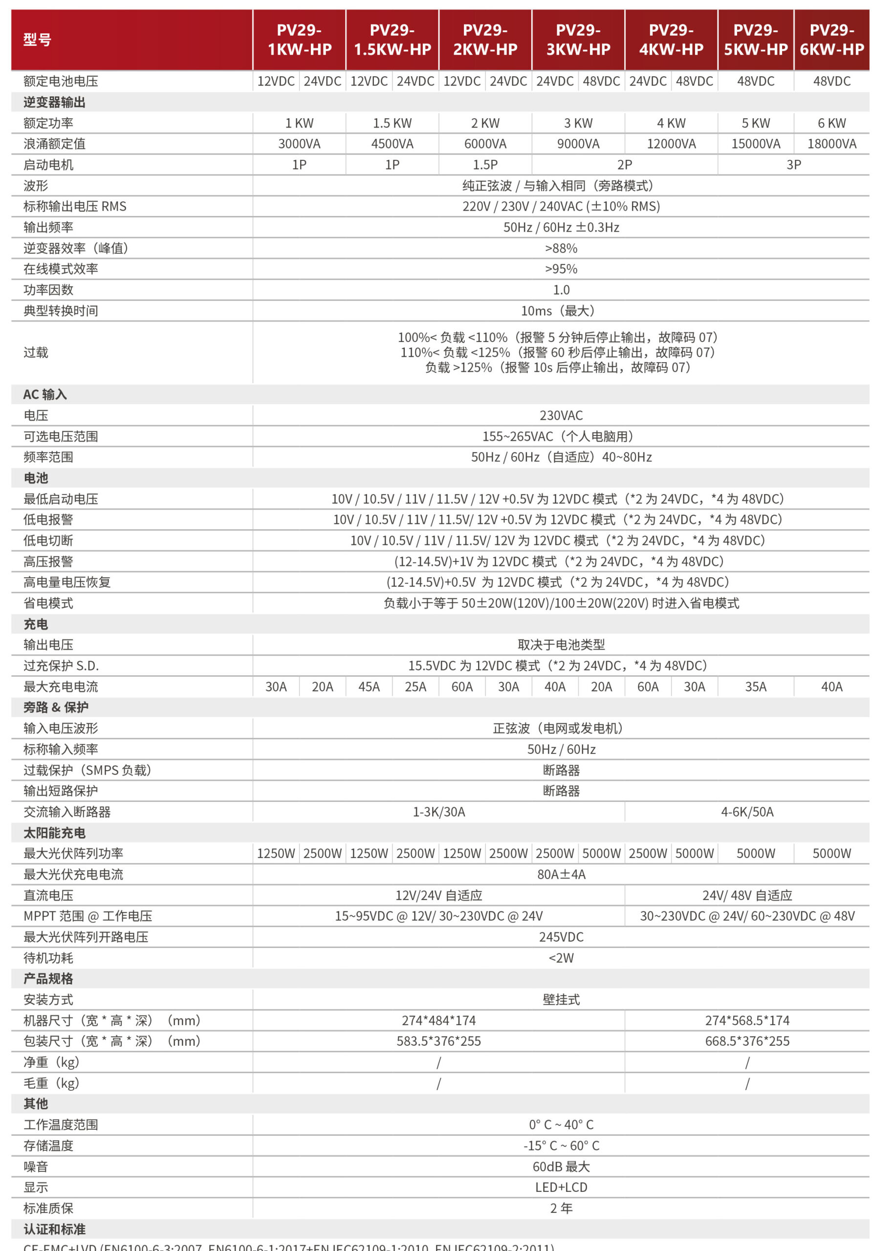 PV2900 HP 系列是一款非常經(jīng)濟的純正弦波太陽能逆變器,內(nèi)置 80A MPPT 充電器;可配置太陽能 / 交流電優(yōu)先級,當設置太陽能優(yōu)先級時,太陽能將作為第一優(yōu)先級為電池充電,當太陽能充電器電流太低時,交流電也可以為電池充電, 這樣系統(tǒng)充電得到最佳優(yōu)化,使逆變器能夠與各種家用電器一起運行。
