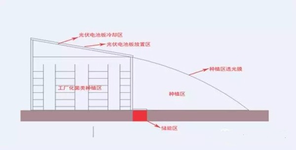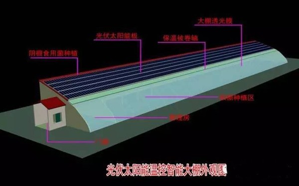 多功能棚屬于智能光伏農業。棚前做冬暖大棚種植植物,棚后做工廠化食用菌養殖,棚頂發電。一棚三用,能量循環、節水、節地、節能。