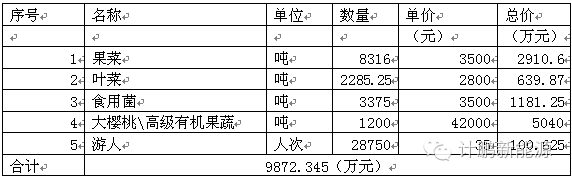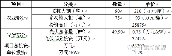 聯棟溫室大棚棚體單位造價約為350元/m2,多功能大棚平均單位造價約為310元/m2,項目整體造價估算見下表所示: